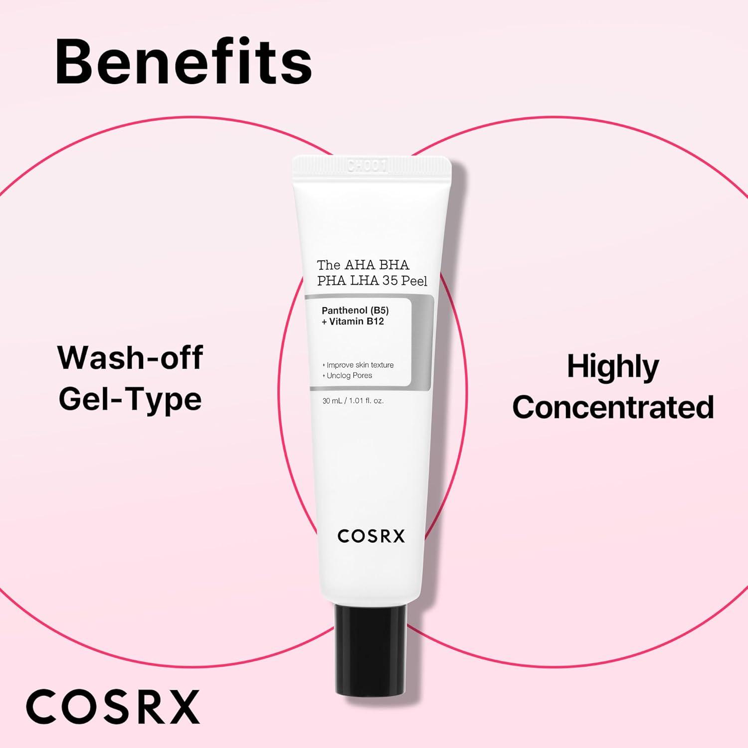 COSRX AHA BHA PHA LHA 35% Peel 1.01 fl. oz / 30 ml, Chemical Exfoliating Peeling Gel for Dull, Rough, Oily Complexion with Clogged Pores & Dead Cells, Highly Concentrated, Korean Skin Care