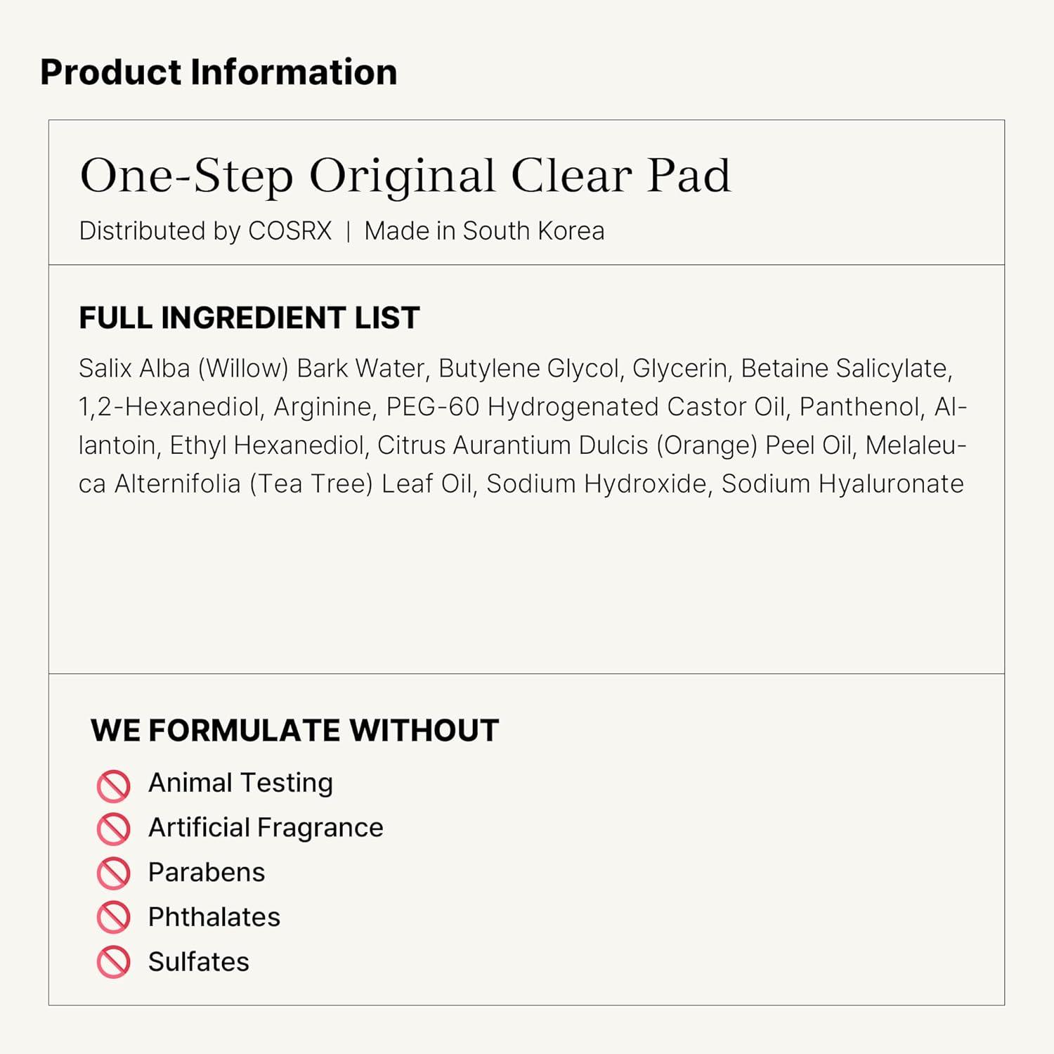 COSRX Standards: COSRX Standards: All COSRX products are formulated with skin-friendly ingredients that alleviate irritated skin. Hypoallergenic, Dermatologist tested, Animal Testing-FREE, Parabens-FREE, Sulfates-FREE, Phthalates-FREE