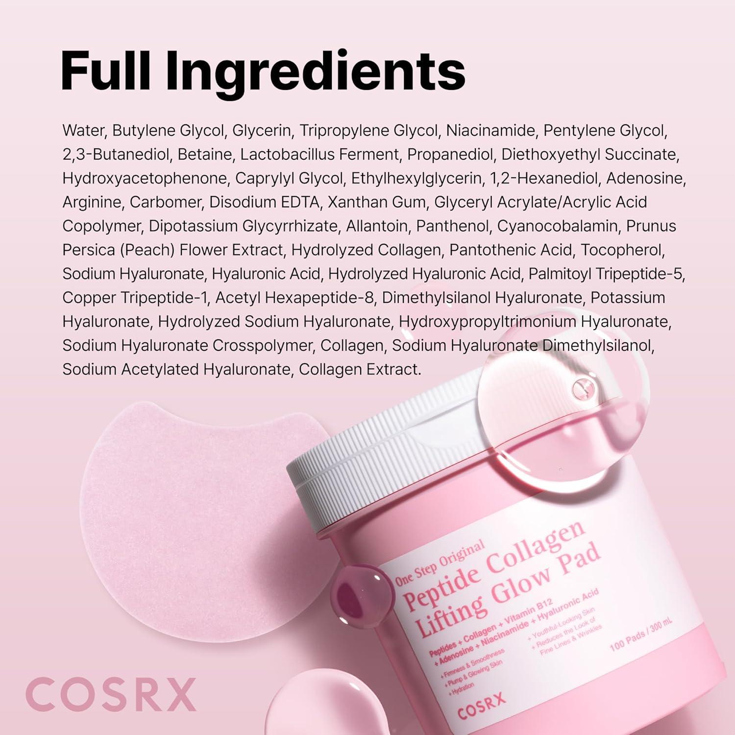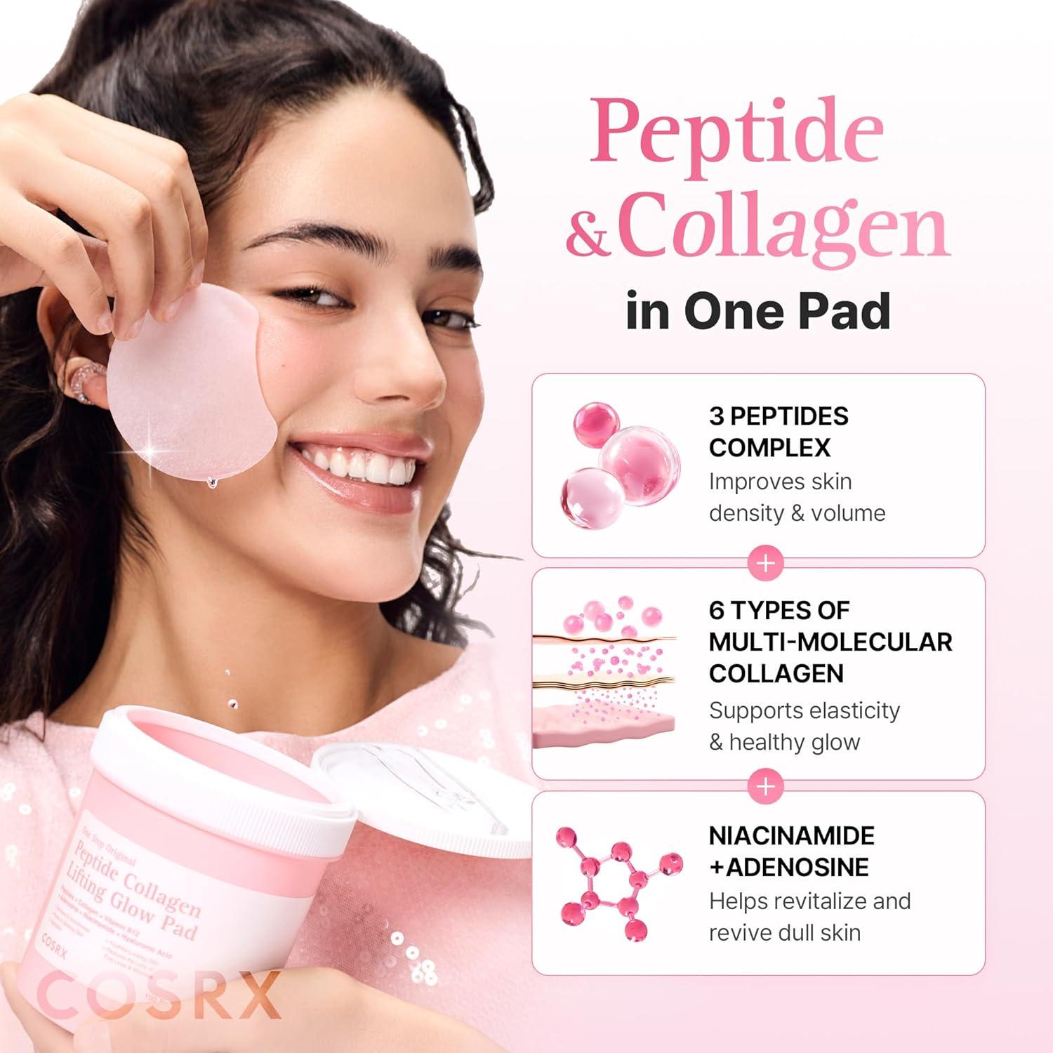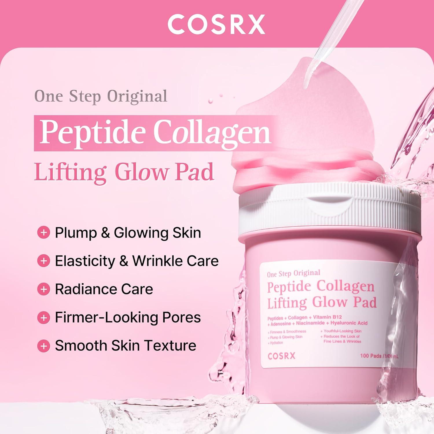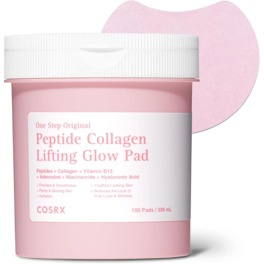 COSRX OneStep Original Peptide Collagen Lifting Glow Pad, 100 Pads, Improving Elasticity, Plumping Toner Pads for Makeup Prep with Peptide, Collagen, Niacinamide & Anti-Aging Care, Korean Skin Care(Lifting + Glow)