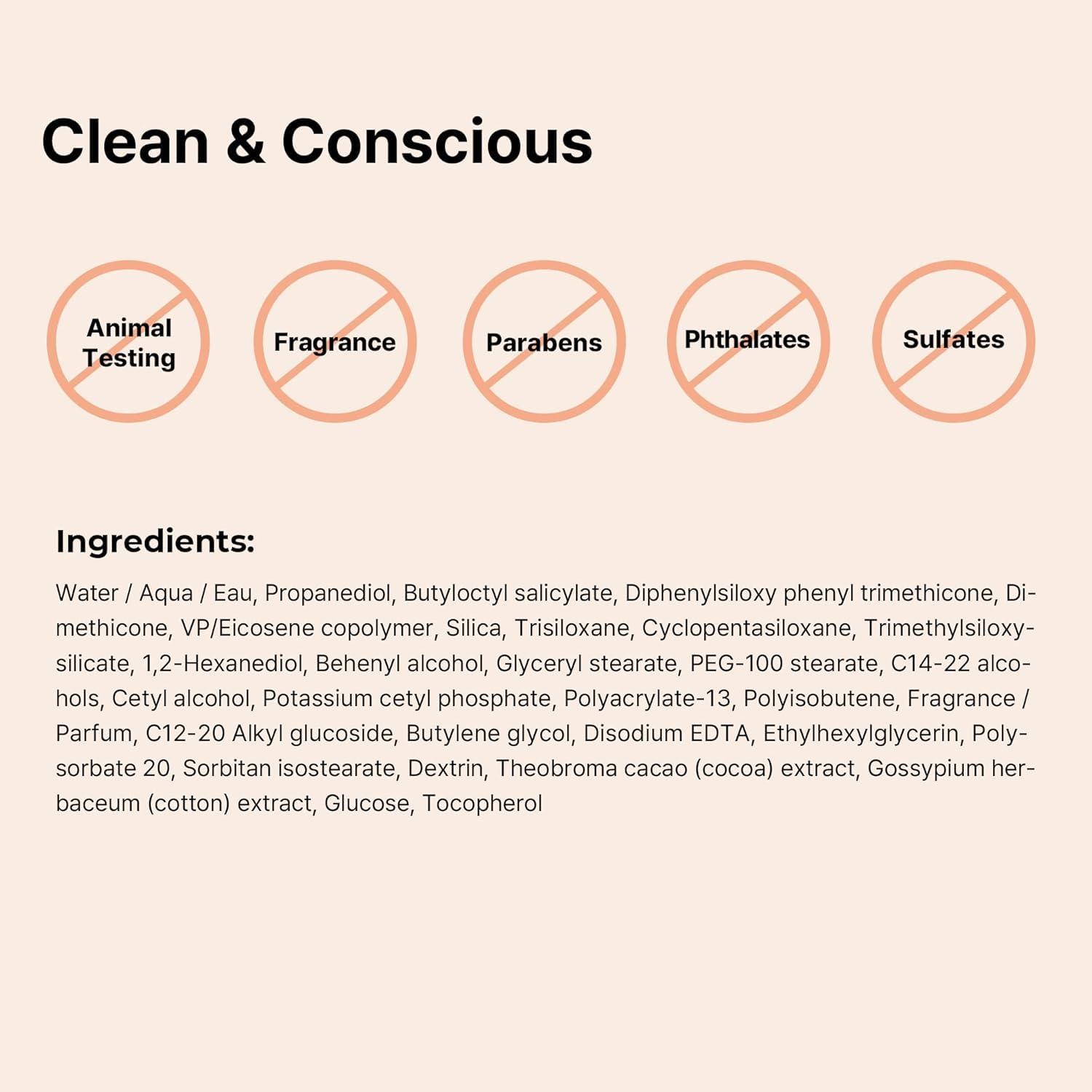 Key Ingredients: SPF 50 provides broad-spectrum UVA & UVB protection. Vitamin E (Tocopherol) protects and strengthens skin. Cacao fights signs of aging, and Cotton helps alleviate redness.
